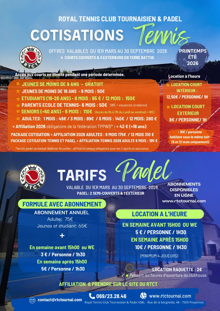 Pour les cotisations ci-dessous, les paiements et les réservations de terrains de padel se font sur l'application Iclub, les réservations de tennis restent pour le moment sur balle jaune mais rejoindront bientôt Iclub